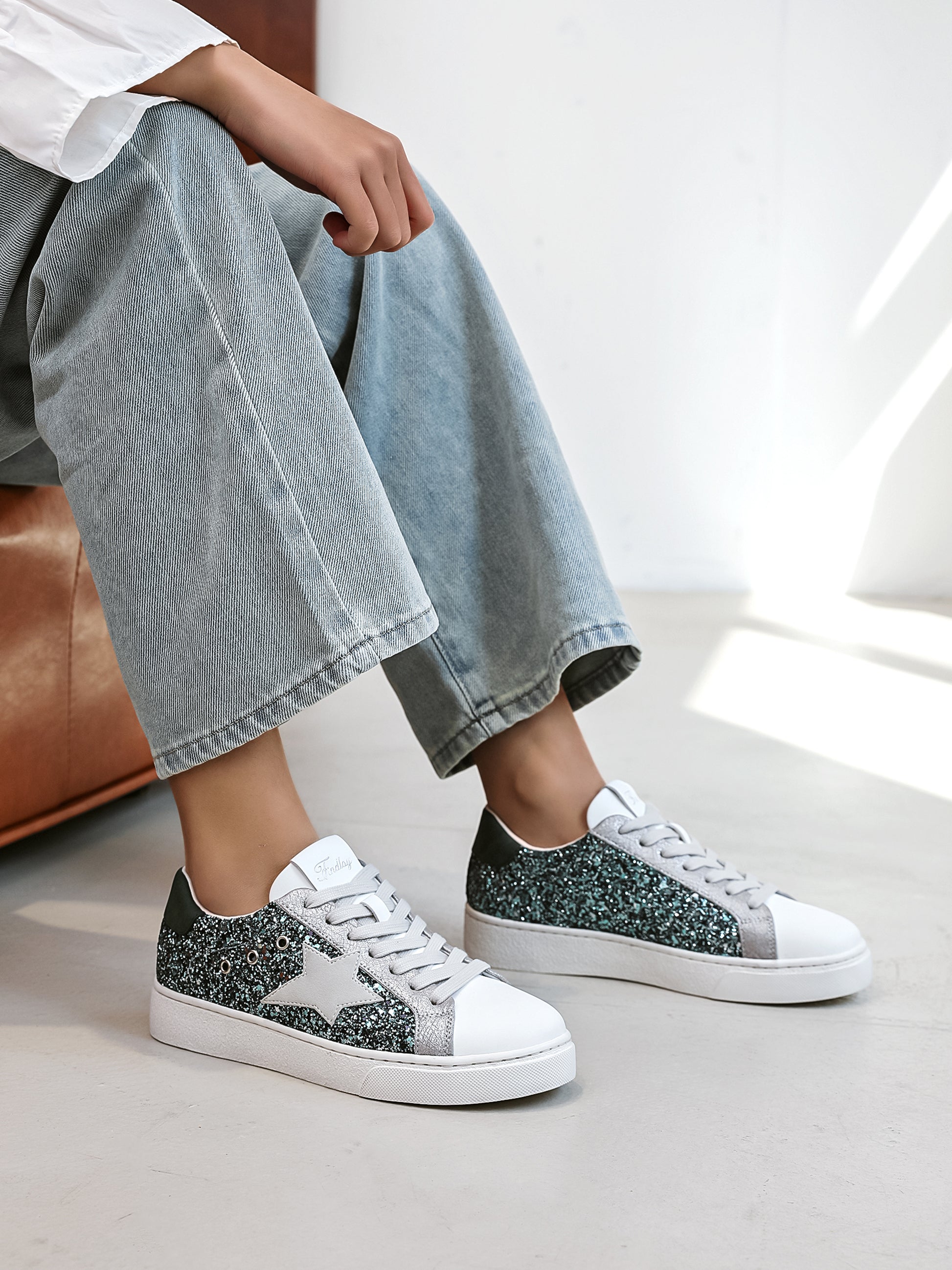 La basket Enara est une magnifique basket pailletée dans les tons vert avec une découpe en forme d'étoile.