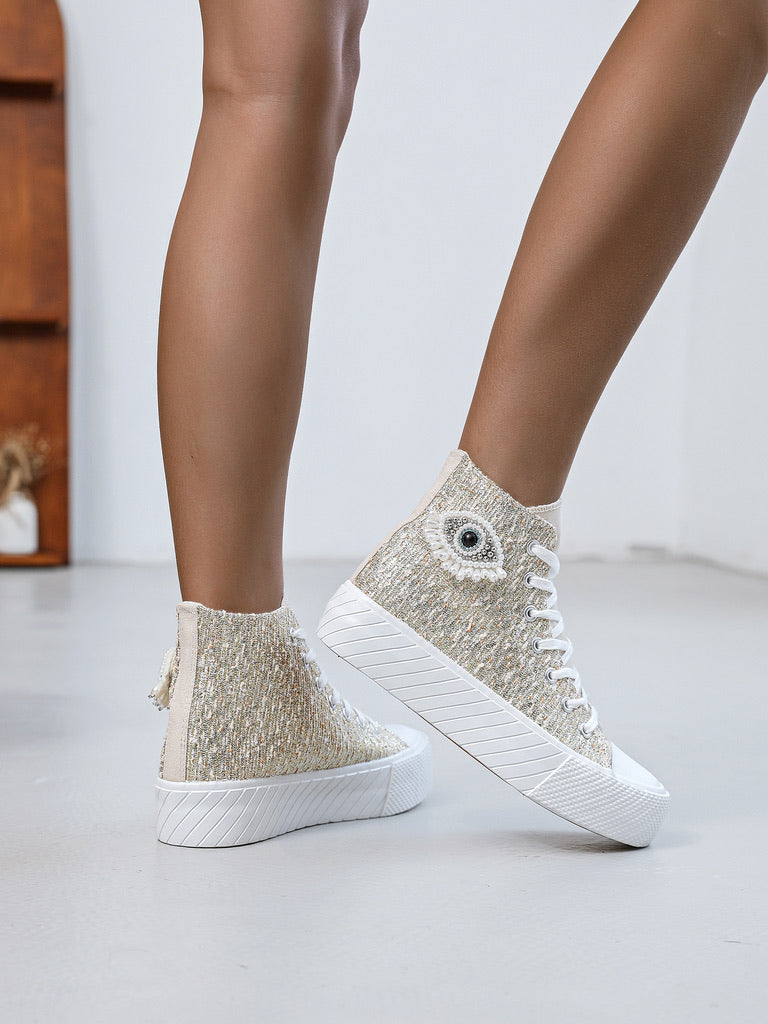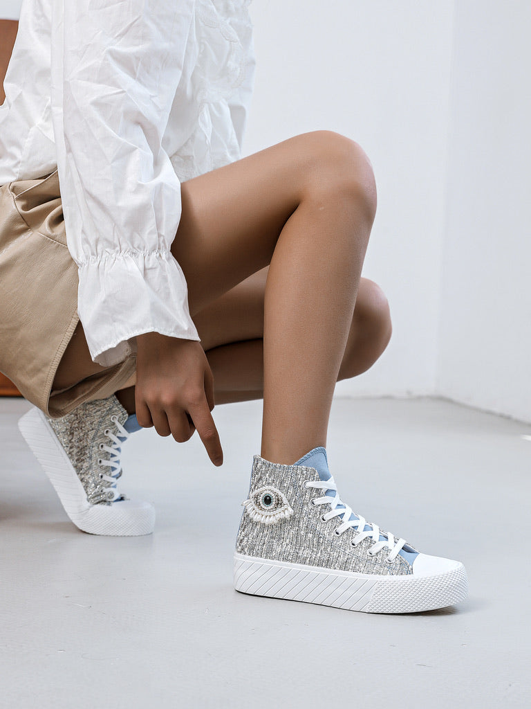 Affirmez votre style avec ces baskets montantes audacieuses au look moderne et symbolique.