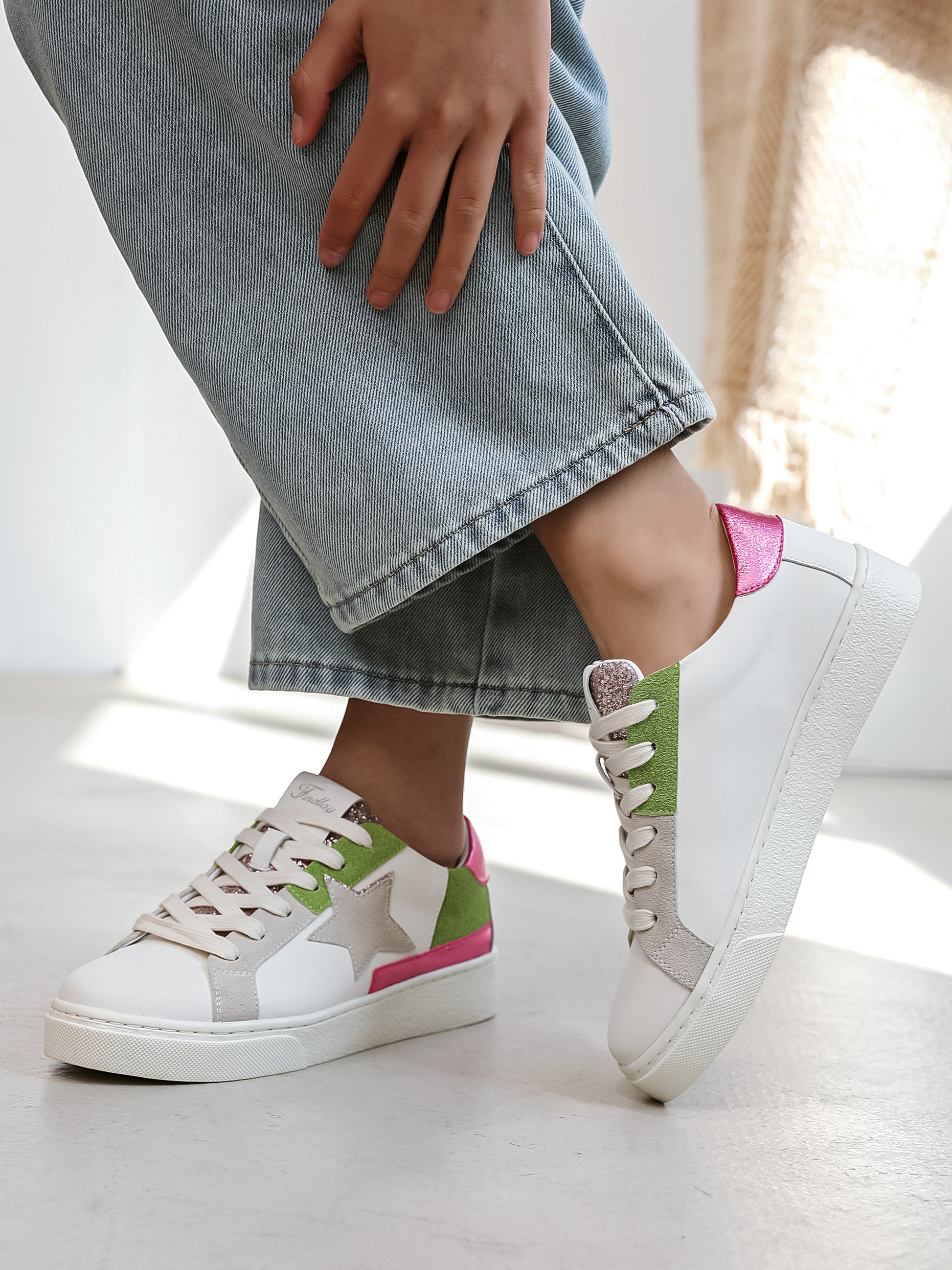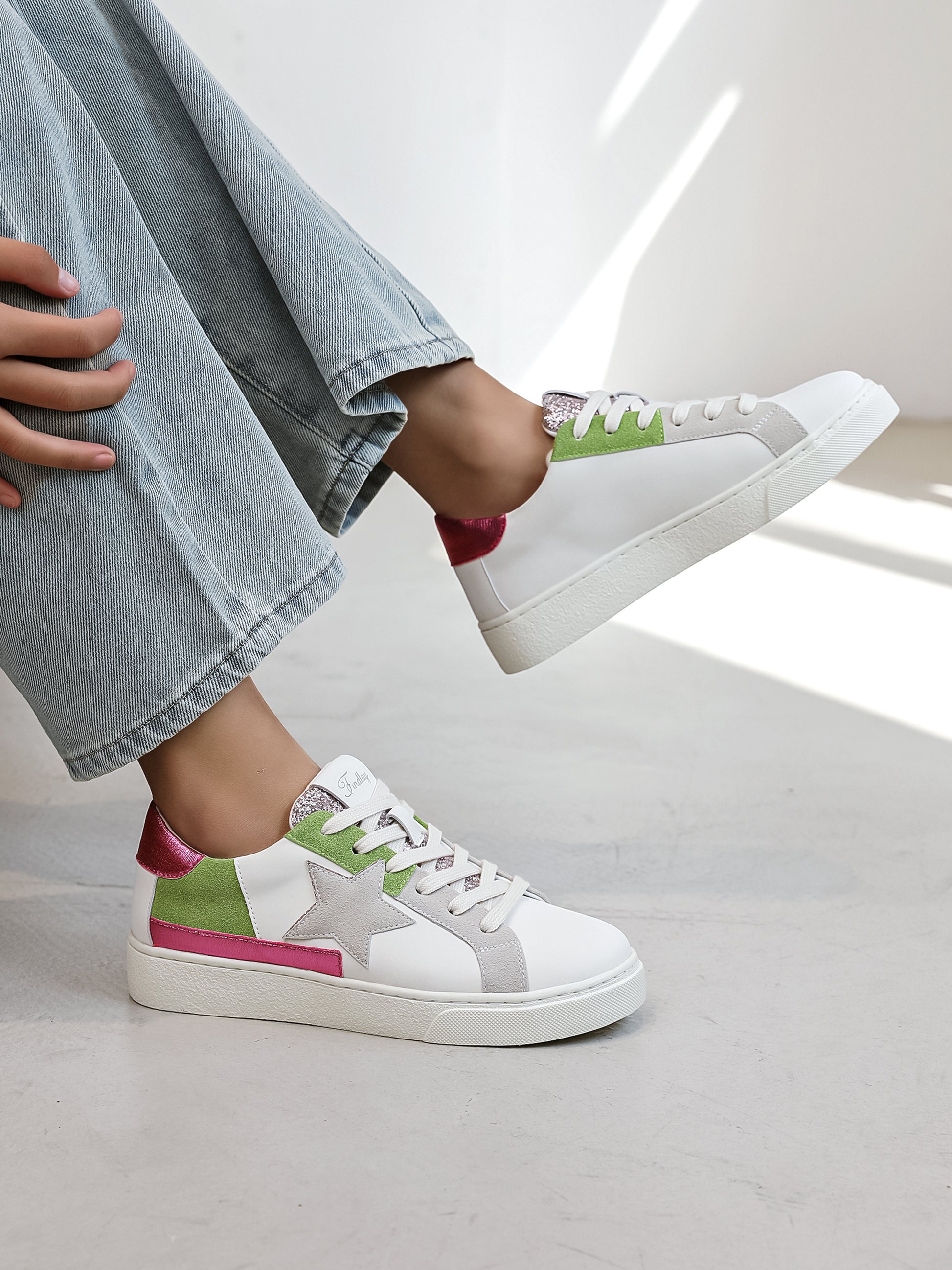 La basket Geni est une magnifique basket à empiècements colorés et une découpe en forme d'étoile qui vient ajouter une touche de modernité a la chaussure.