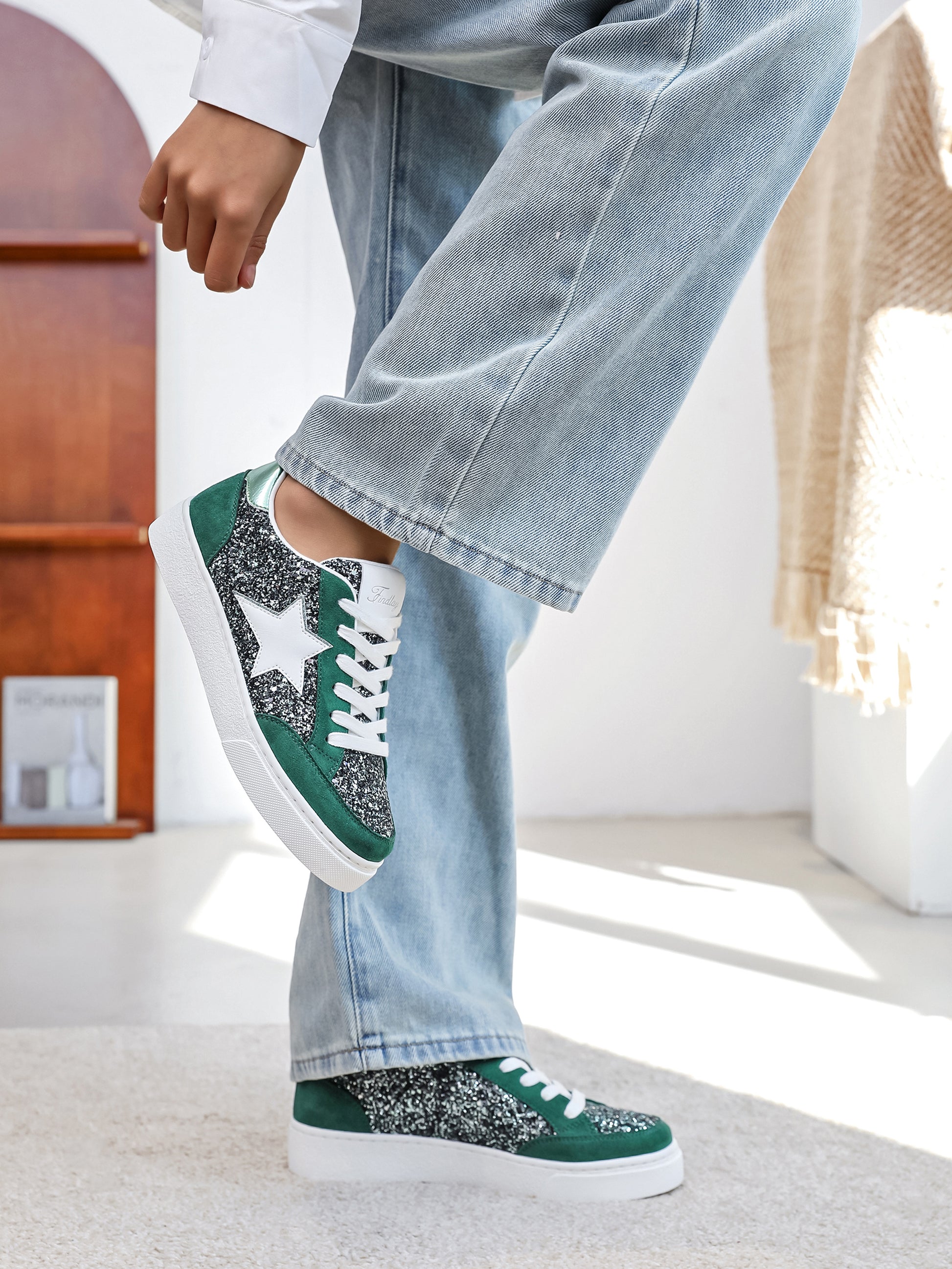 La basket Nerea est une magnifique basket pailletée dans les tons verts avec une découpe en forme d'étoile.