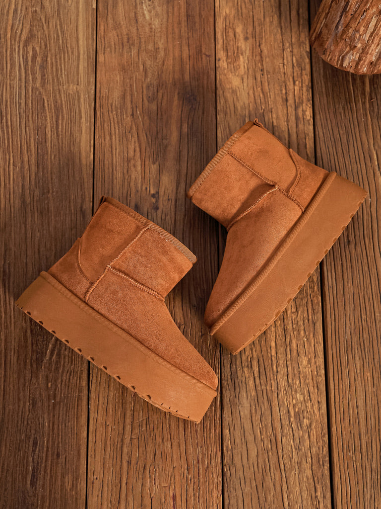 Botte ultra tendance, modèle mini en suédine avec une plateforme en caoutchouc de 5 cm et une fourrure synthétique à l'intérieur. Elles sont très douces et confortables à porter.