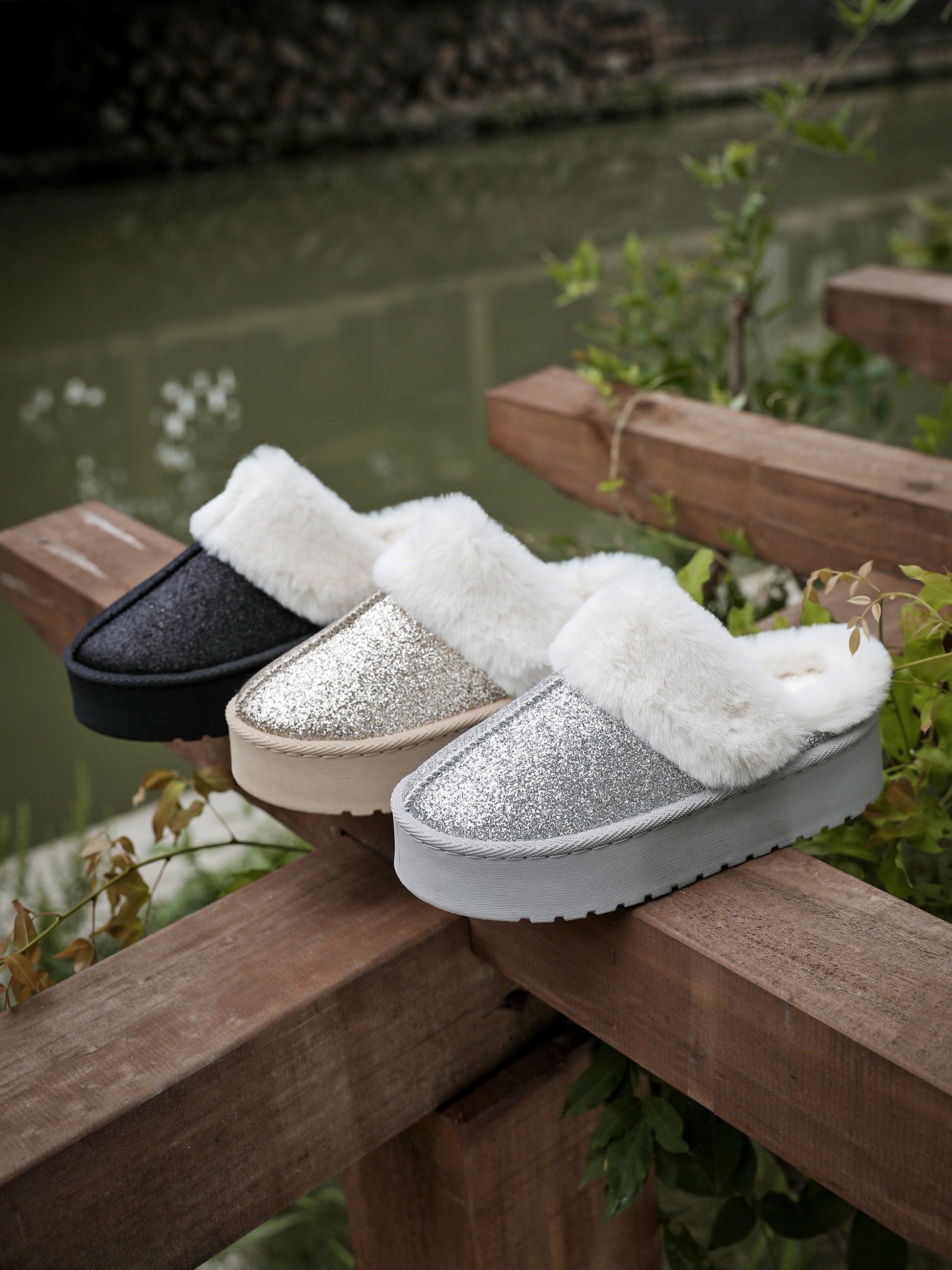 Ces chaussons style mules pailletés disposent d'un col en fourrure synthétique et d'un bout arrondi. Elles apporteront beaucoup de style à votre tenue et vous tiendrons chaud tout l'hiver.