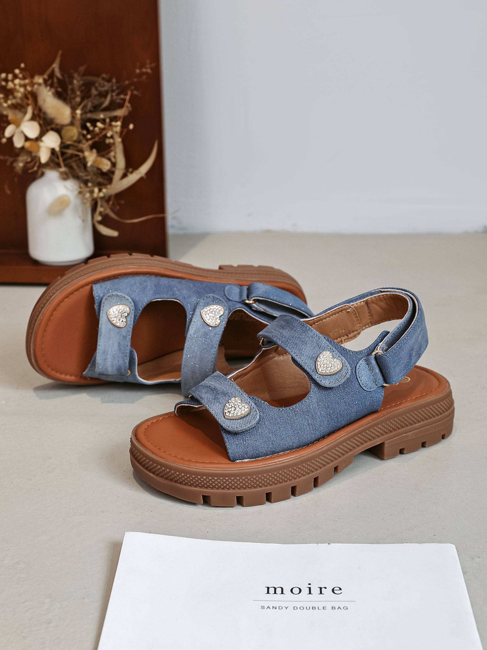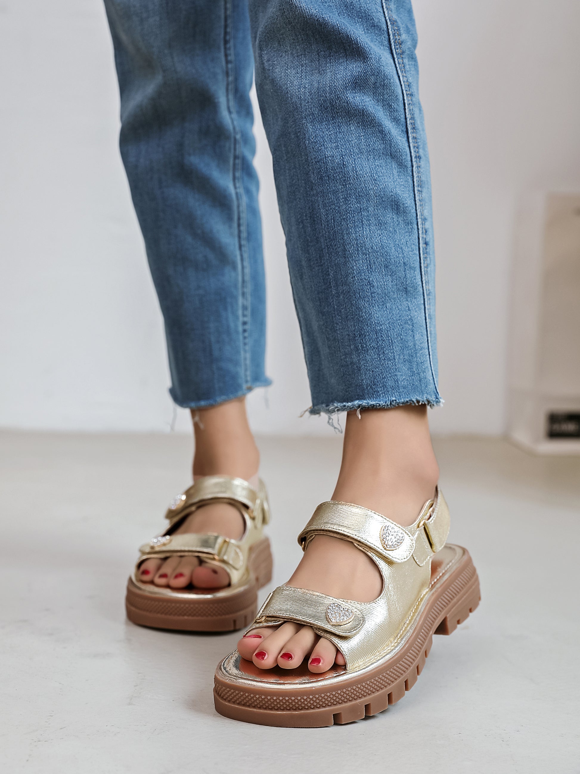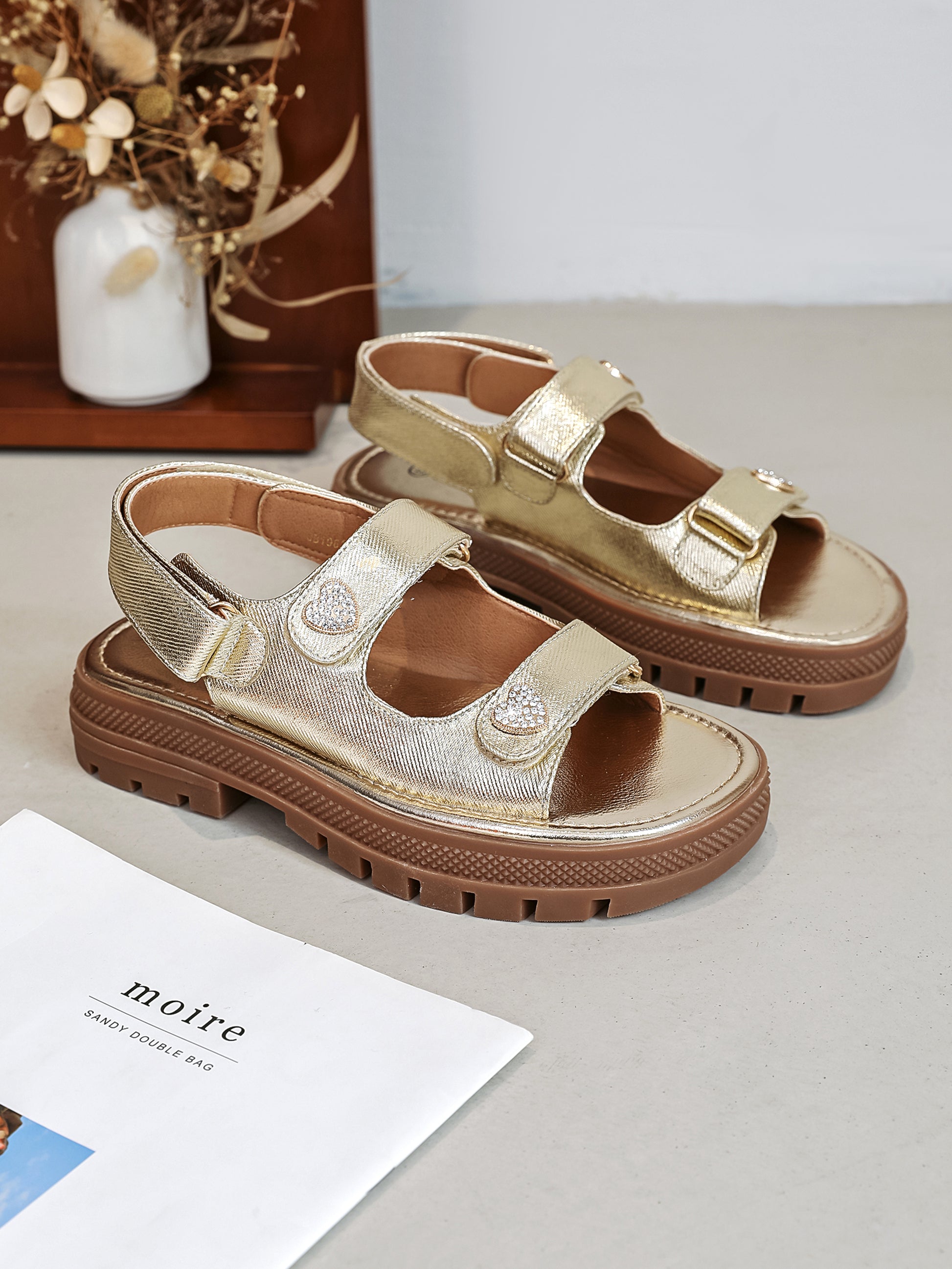 Une très jolie paire de sandale posé sur une semelle crantée avec un ornement de cœur.