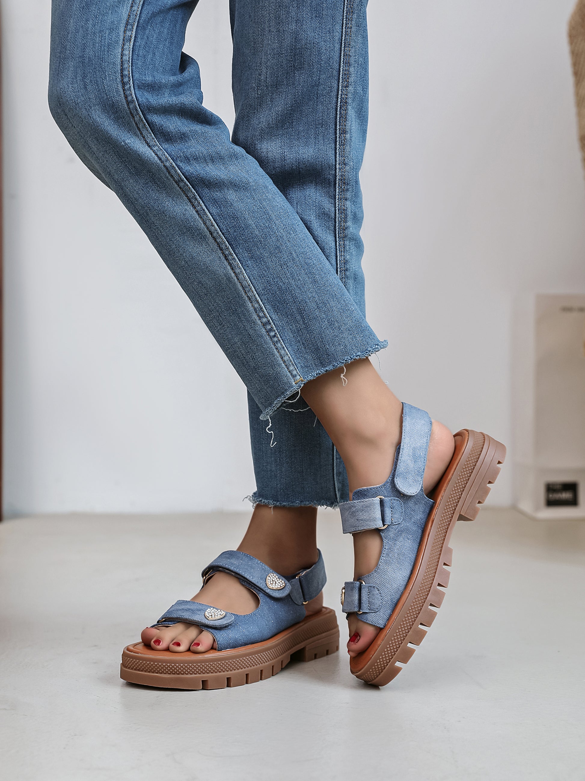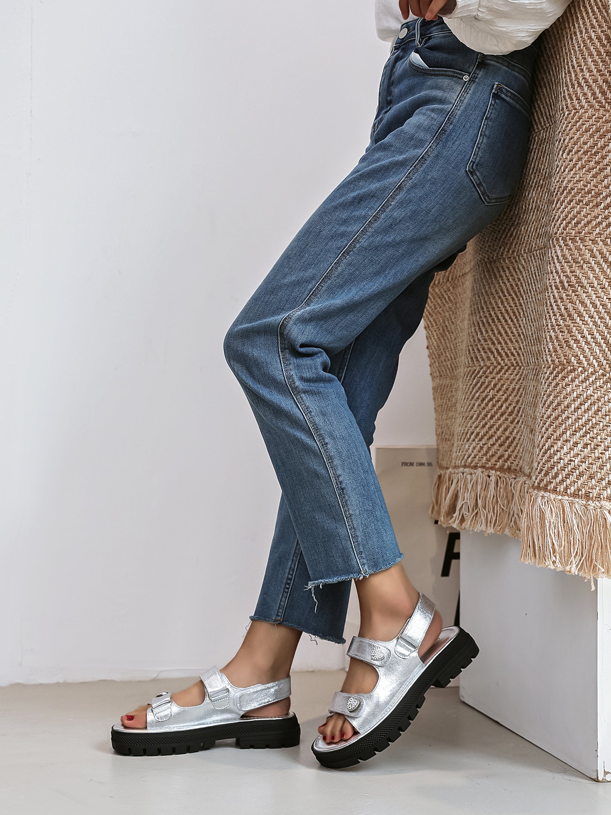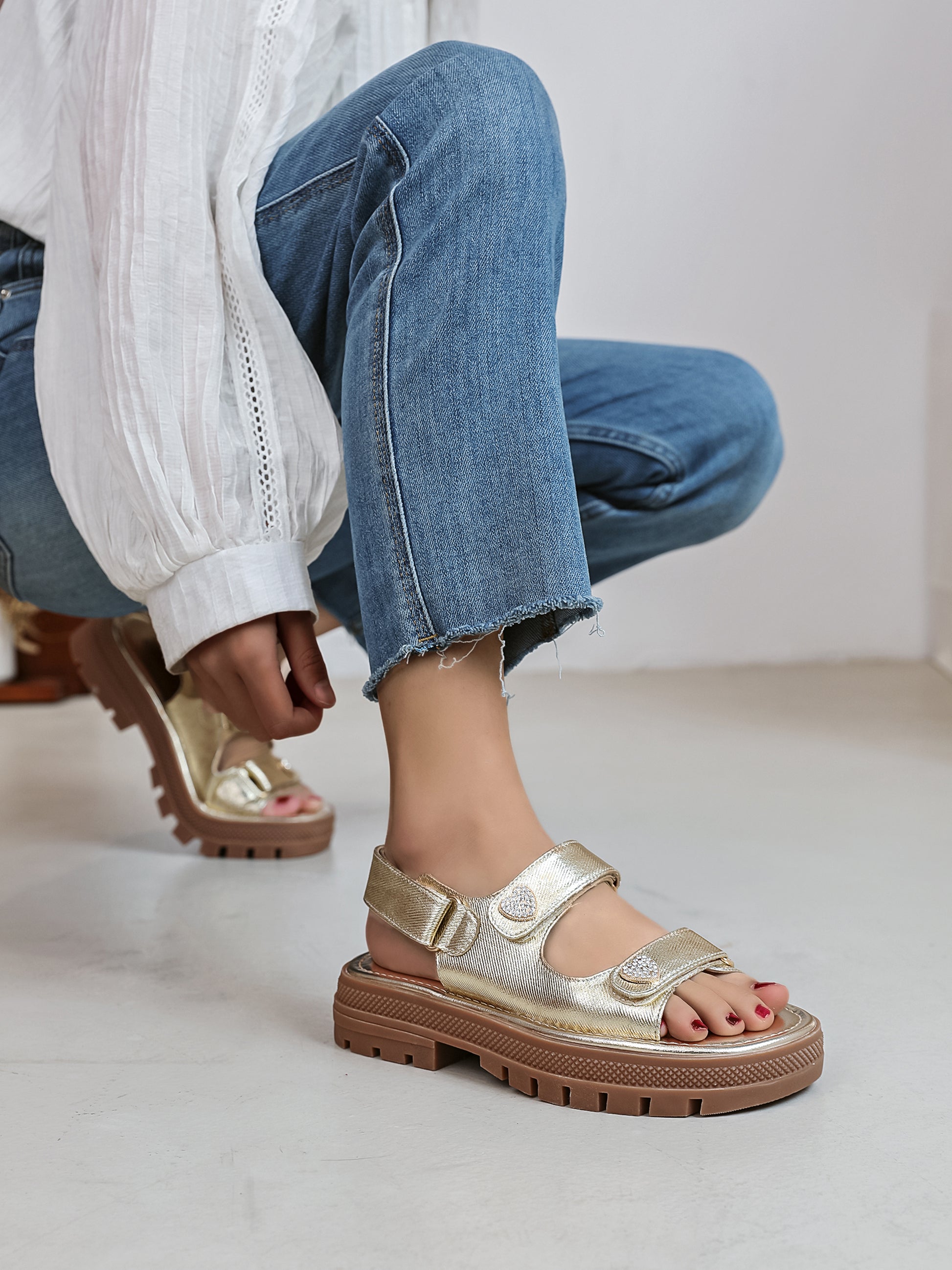 Une très jolie paire de sandale posé sur une semelle crantée avec un ornement de cœur.